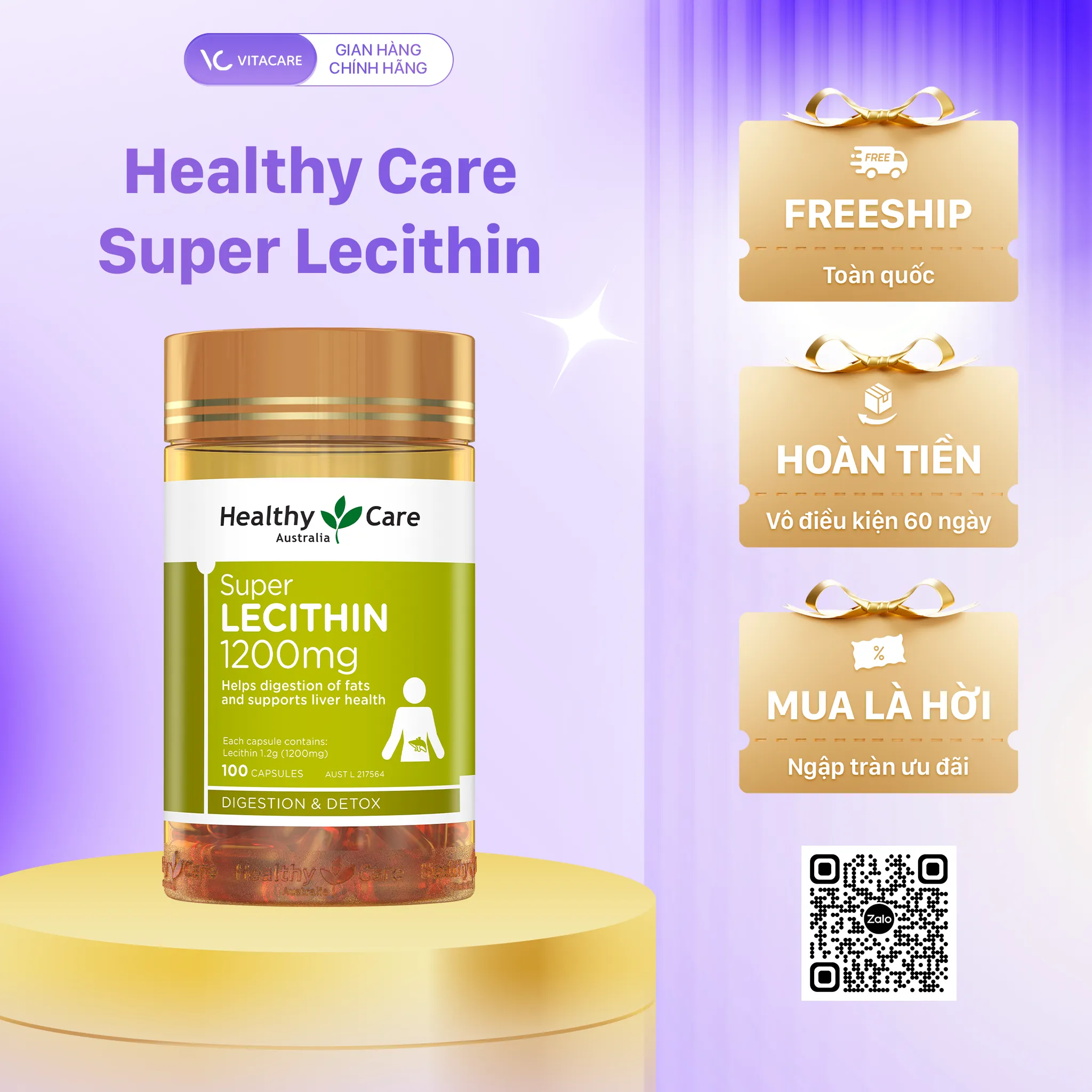 Chọn Lecithin Healthy Care 1200mg chính hãng tại VitaCare