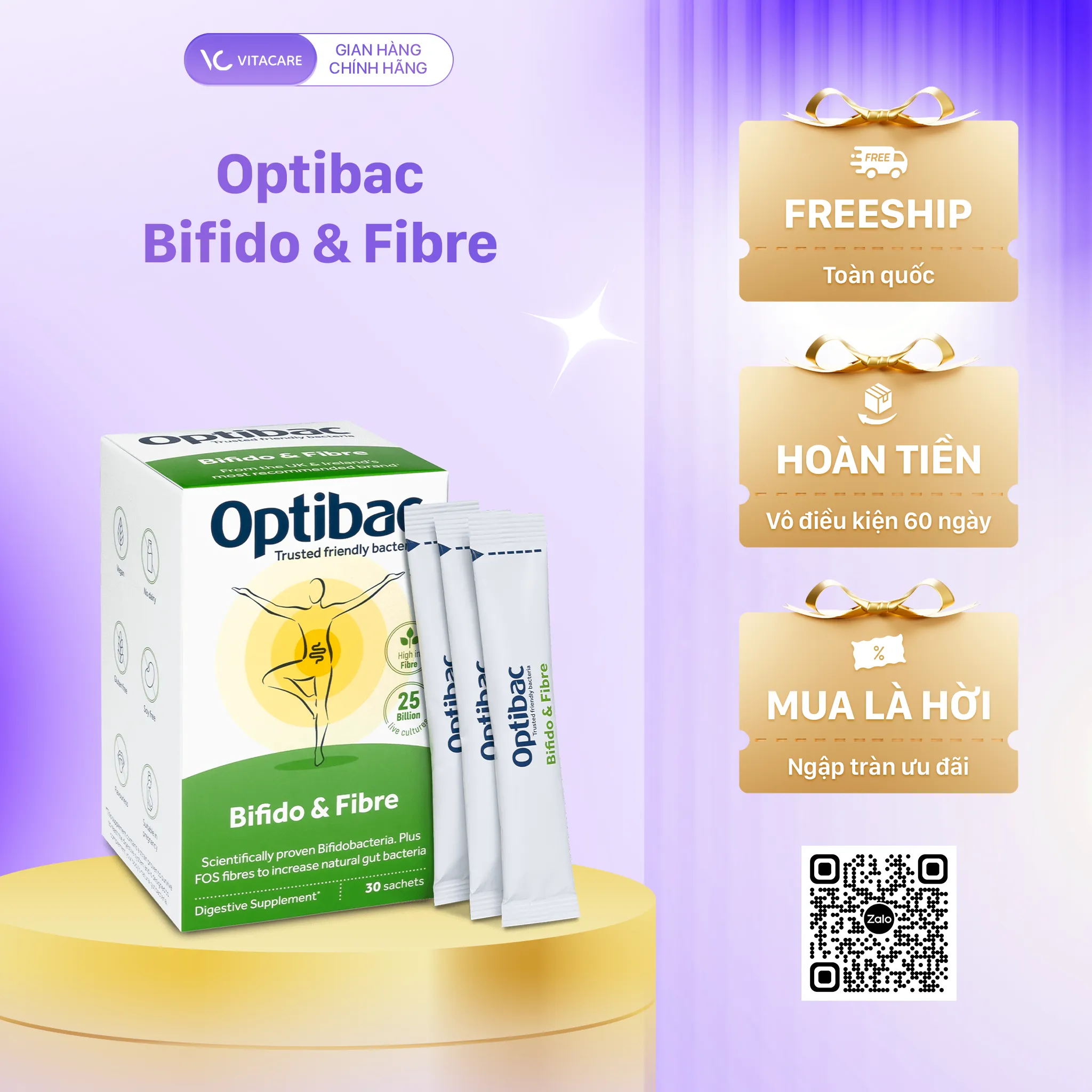 - Dễ dàng khi sử dụng, phù hợp với mọi lứa tuổi: OptiBac Probiotics Bifido & Fibre dễ dàng hấp thụ, thích hợp cho cả phụ nữ, nam giới và trẻ em trên 1 tuổi.
