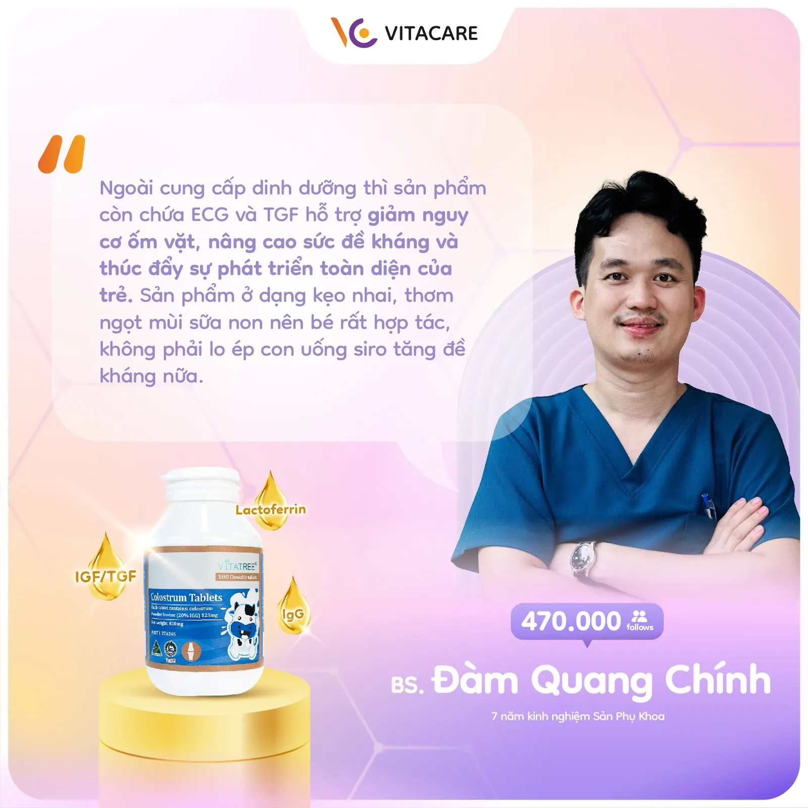 Bác sĩ Đàm Quang Chính nói về sản phẩm viên sữa bò non Vitatree Colostrum Tablets