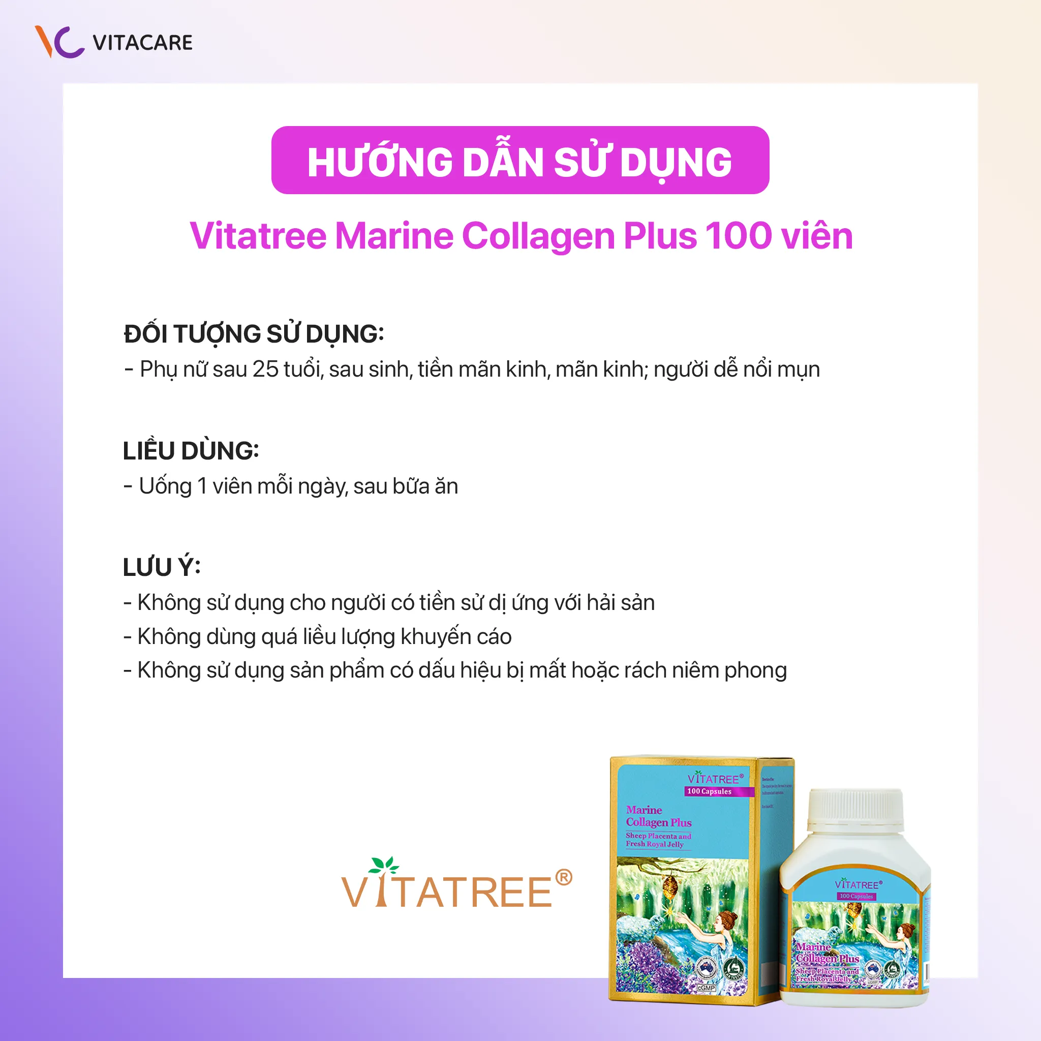 Hướng dẫn sử dụng Vitatree Marine Collagen Plus 100 viên