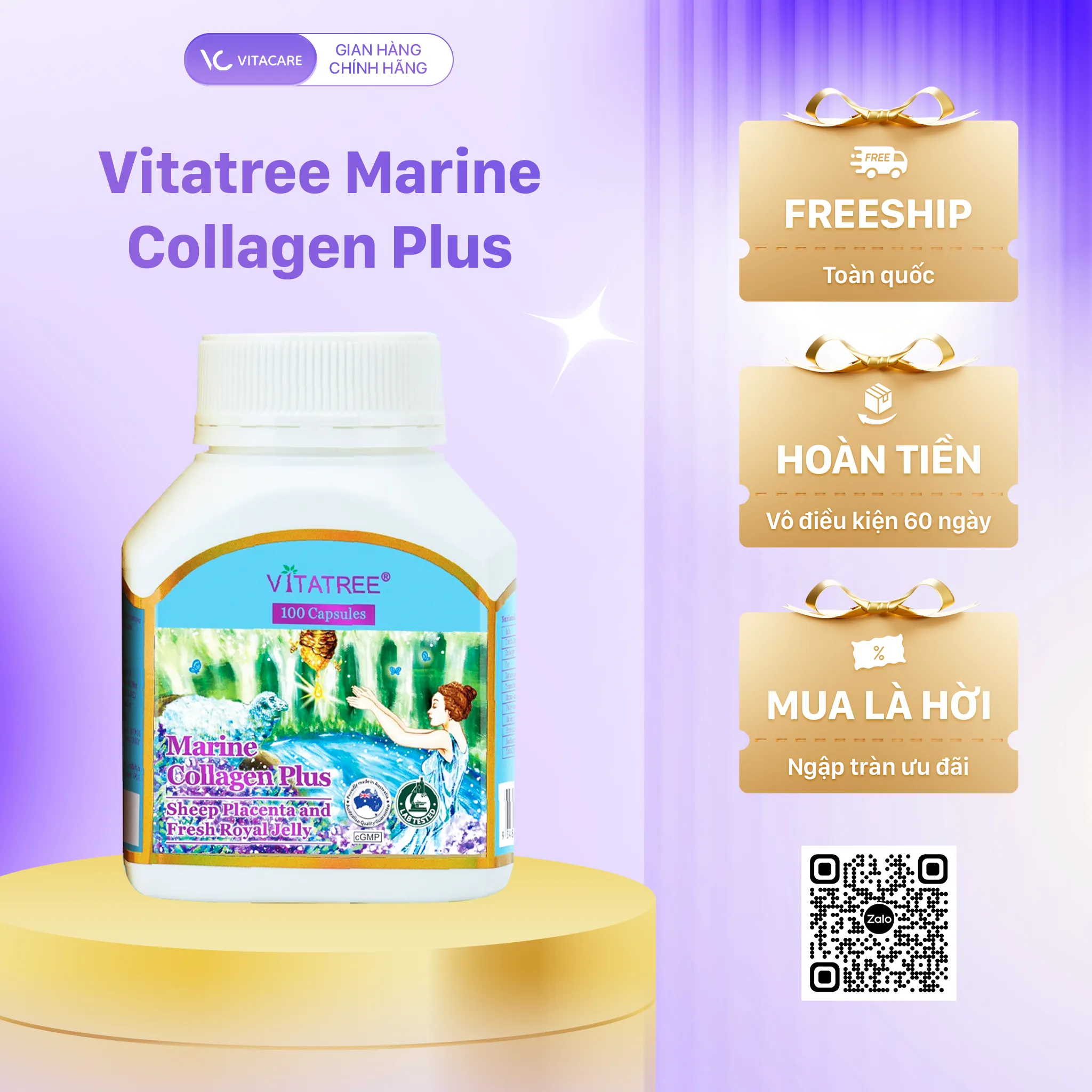Đặt mua chính hãng Vitatree Marine Collagen Plus 100 viên tại Vitacare.vn ngay hôm nay hoặc liên hệ với đội ngũ tư vấn để được hỗ trợ nhanh chóng nhất!