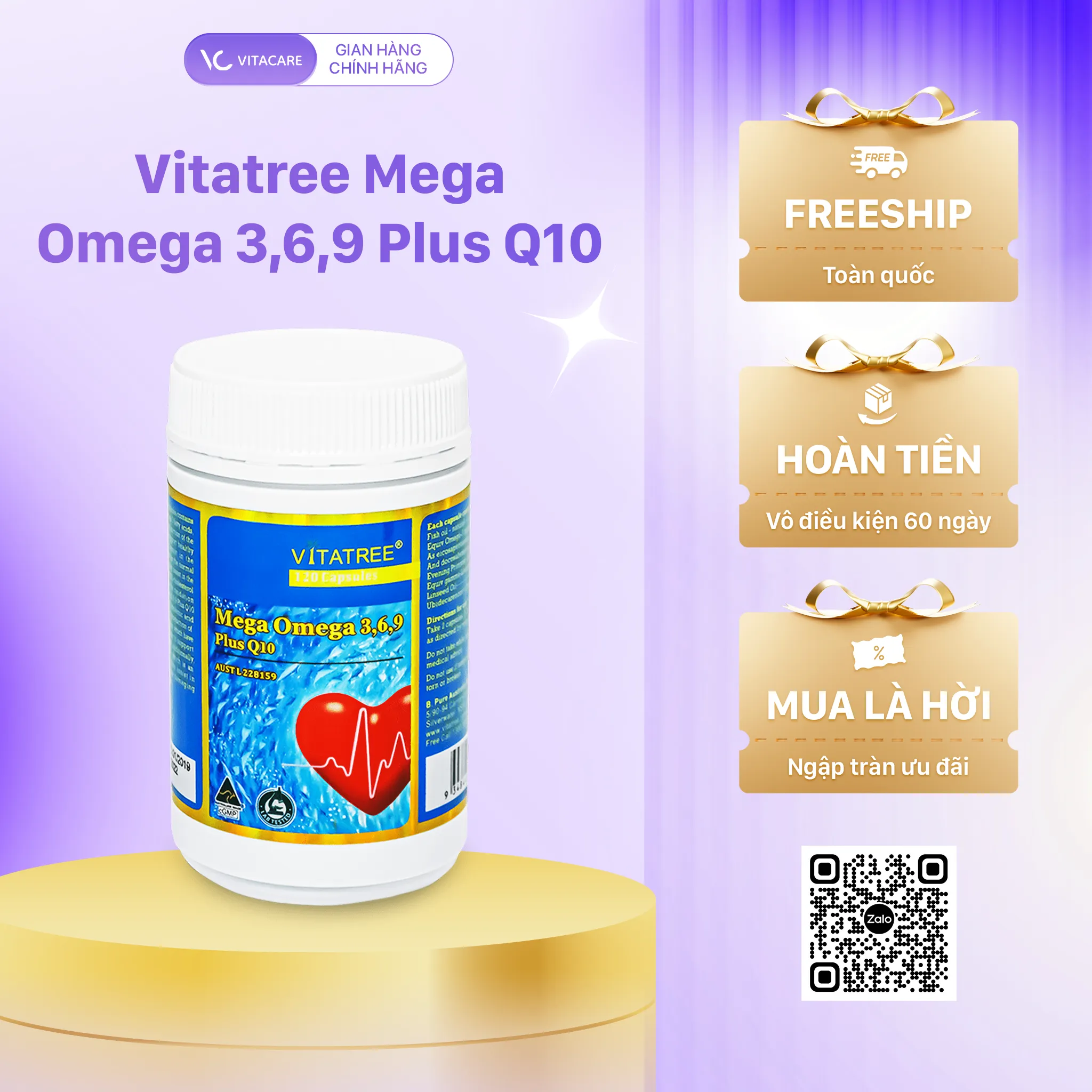Với những công dụng vượt trội cho sức khỏe tim mạch, trí não và làn da, Vitatree Mega Omega 3,6,9 Plus Q10 là sự lựa chọn tuyệt vời cho những ai muốn kiểm soát lượng cholesterol, bảo vệ tim mạch, tăng cường miễn dịch và làm chậm quá trình lão hóa. Hãy liên hệ ngay với Vitacare.vn để mua sản phẩm chính hãng và nhận tư vấn chi tiết!